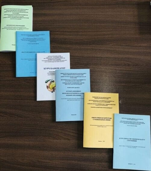 - Курч панкреатит: методическое пособие для студентов IV–V курсов лечебного факультета — Сопуев А.А., Талипов Н.О., Атакозиев А.Т.; Бишкек, 2023. — 44 с.