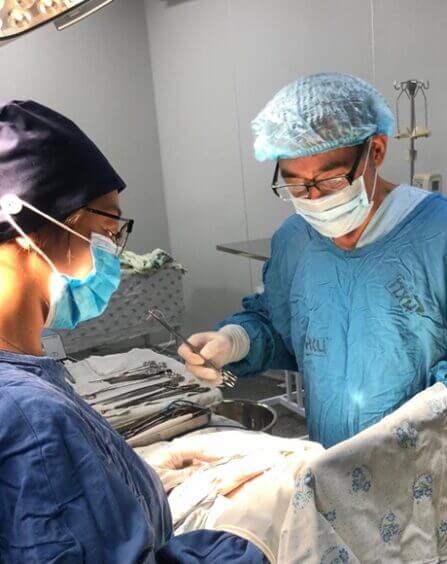 Доцент кафедры Самаков А.А. во время операции со студентом-ассистентом.