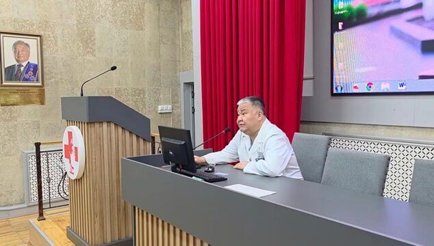 Заведующий кафедрой, д.м.н., профессор Сопуев А.А., проводит утреннюю пятиминутку.
