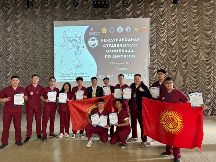 8-14 апреля 2024 года в прошедшей XXXII Московской международной студенческой хирургической олимпиаде имени академика М. И. Перельмана студенты факультета Лечебное дело №1 Вахидов Али, Пирматов Жангазы, Көчкөнов Азамат прошли в финал и принимая активное участие защищали честь факультета в Москве.