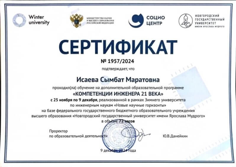 Студентка 3 курса Исаева Сымбат ,участвовала во многих конкурсах,форумах и образовательных программ.