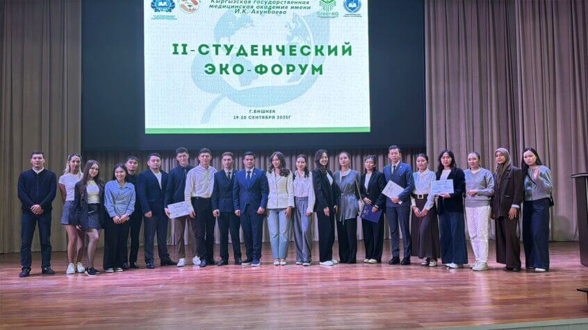 В Кыргызской государственной медицинской академии имени И. К. Ахунбаева успешно прошёл II Студенческий Экофорум, организованный в рамках проекта Green KG. Форум стал площадкой для диалога между студентами, молодыми исследователями, экспертами и экологическими активистами из Кыргызстана и стран Центральной Азии. Участники обсудили актуальные экологические вызовы и представили молодёжные инициативы, направленные на достижение целей устойчивого развития (ЦУР).