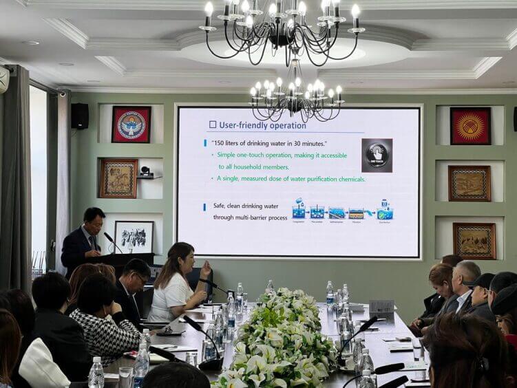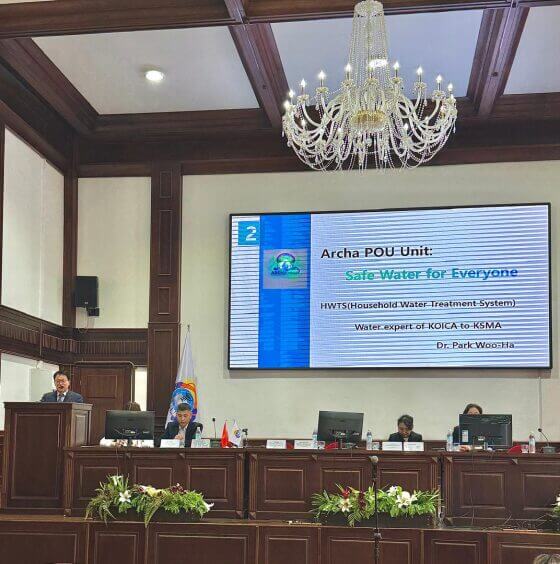 Особый интерес участников вызвало выступление эксперта KOICA Пак Ву Ха, который является сотрудником Офиса зеленых и цифровых технологий КГМА. В рамках его презентации была представлена инновационная технология очистки воды — установка ARCHA POU (Point-of-Use), предназначенная для обеспечения безопасной питьевой водой непосредственно в местах потребления. В ходе мероприятия состоялась демонстрация работы установки, что позволило участникам на практике ознакомиться с её возможностями и значением для повышения качества жизни.