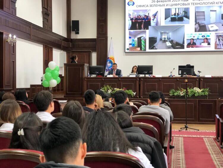 Бишкек, 26 февраля 2025 года – В Актовом зале Кыргызской государственной медицинской академии им. И.К. Ахунбаева (КГМА) состоялось официальное открытие Зеленого и Цифрового офиса в рамках проекта «Зеленые и цифровые вузы Кыргызстана». Это значимое событие стало отправной точкой в продвижении устойчивого развития, экологической осведомленности и цифровизации в образовательной среде страны.