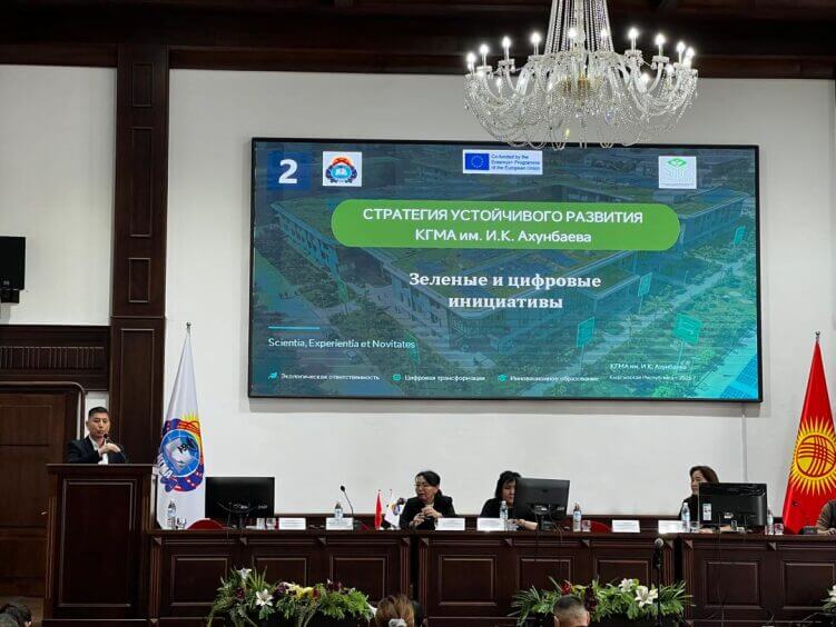 Важно отметить, что Офис зеленых и цифровых технологий КГМА, открытый год назад, стал ключевым элементом институциональных преобразований университета. Его деятельность направлена на формирование экологической политики, рациональное использование ресурсов, внедрение энерго- и ресурсосберегающих технологий, а также развитие цифровой инфраструктуры. Работа Офиса реализуется в рамках Стратегии развития КГМА на 2023–2027 годы и соответствует Целям устойчивого развития Кыргызской Республики.