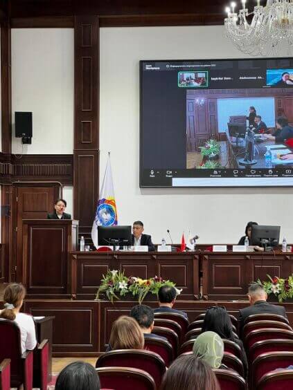 5 марта 2025 года в Кыргызском национальном университете (КНУ) прошла лекция для преподавательского состава и магистрантов, организованная по инициативе Кыргызской государственной медицинской академии (КГМА) и нового Офиса зеленых и цифровых технологий КГМА. Лекцию провел доктор Пак У Ха, эксперт Международной организации KOICA, который работает в этом офисе с февраля 2025 года и продолжит свою деятельность в течение года. Тема лекции — «Методы очистки поверхностных вод» — привлекла большое внимание участников, подчеркнув важность современных подходов к очистке водных ресурсов для обеспечения экологической безопасности и стабильного водоснабжения.