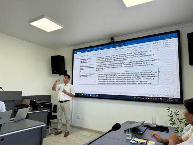 26 февраля 2025 года в Кыргызской государственной медицинской академии (КГМА) был проведен семинар, посвященный вопросам внедрения зеленых и цифровых технологий в образовательный процесс и устойчивое развитие университетов. Мероприятие собрало преподавателей, студентов и экспертов, которые обсудили актуальные темы, направленные на улучшение экологии и эффективность образовательных процессов.