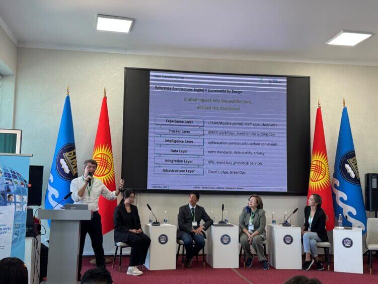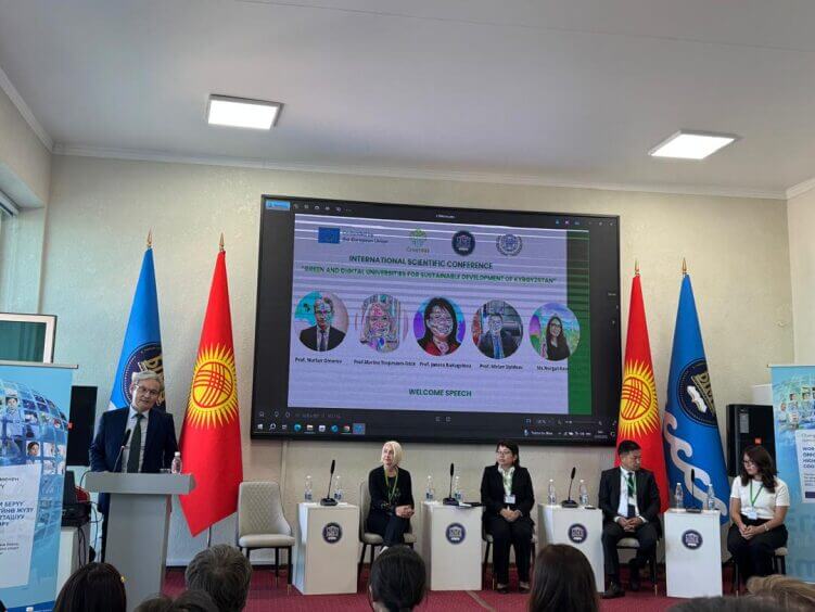 Поддержку инициативе выразили и партнеры проекта – координатор программы Green KG в Кыргызстане Жанара Байтуголова, а также менеджер проектов Национального офиса программы Эразмус+ в Кыргызстане Нургуль Касенова. В своих выступлениях они рассказали о значении проекта для всей страны, его миссии по снижению экологического следа и внедрению цифровых решений в управление и обучение в университетах.