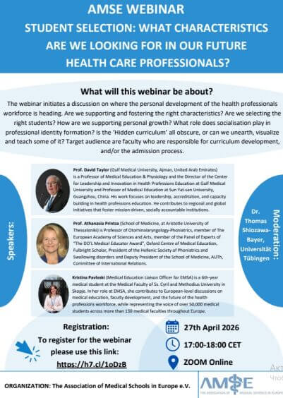Ассоциация медицинских школ Европы (AMSE) приглашает преподавателей и сотрудников медицинских вузов принять участие в международном вебинаре: