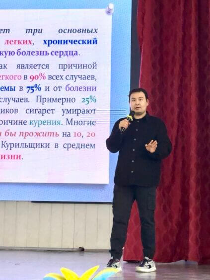 19 марта ассистент кафедры семейной медицины додипломного и постдипломного образования Кушубеков Дастан Касымович провёл профилактическую лекцию для учащихся 10–11 классов Школы-гимназии №13 на тему: «Электронные сигареты: мифы и факты».